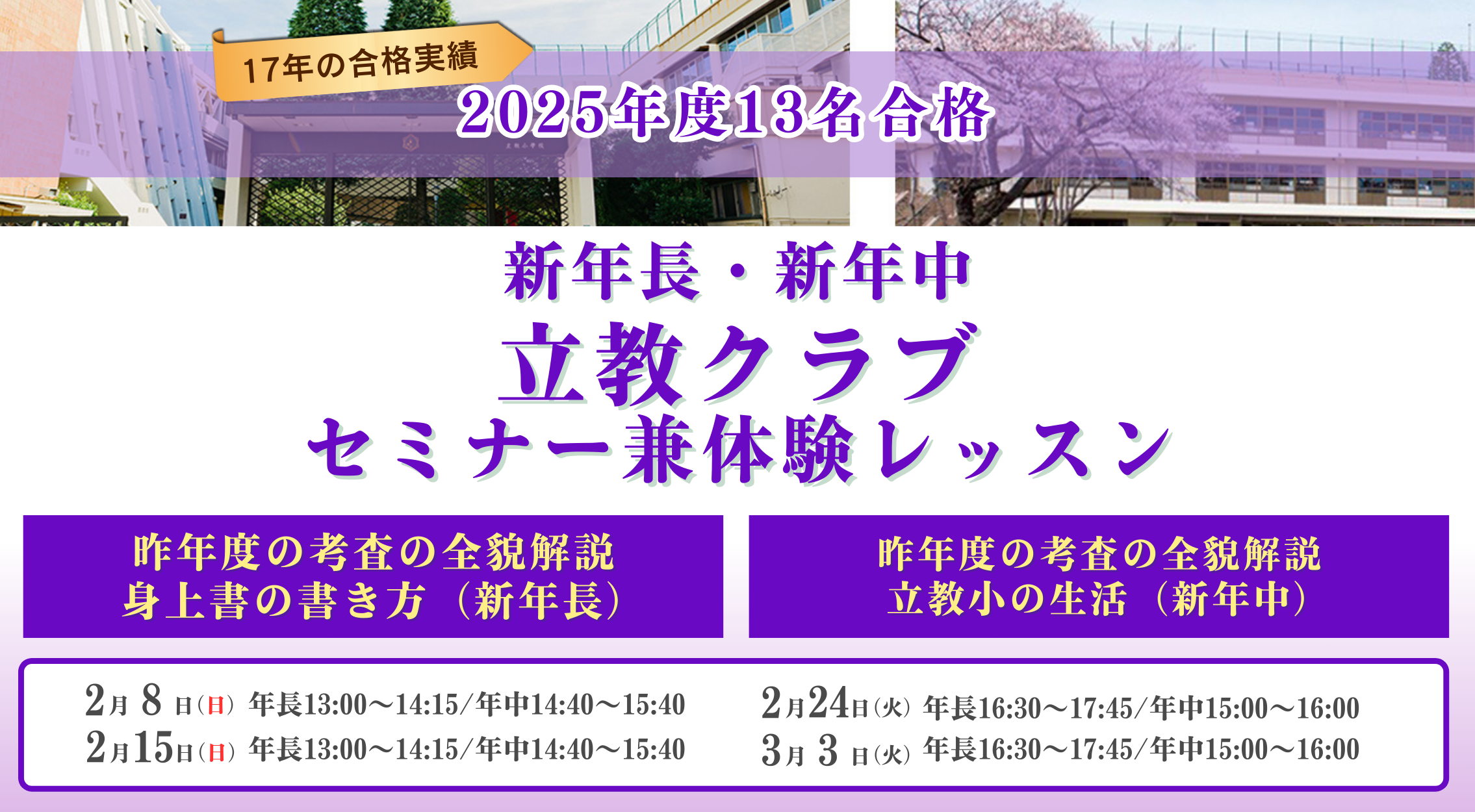 2月15日(日)13:00~14:15  同時開催セミナー 立教小昨年の考査の内容(*合格するためのご家庭教育)