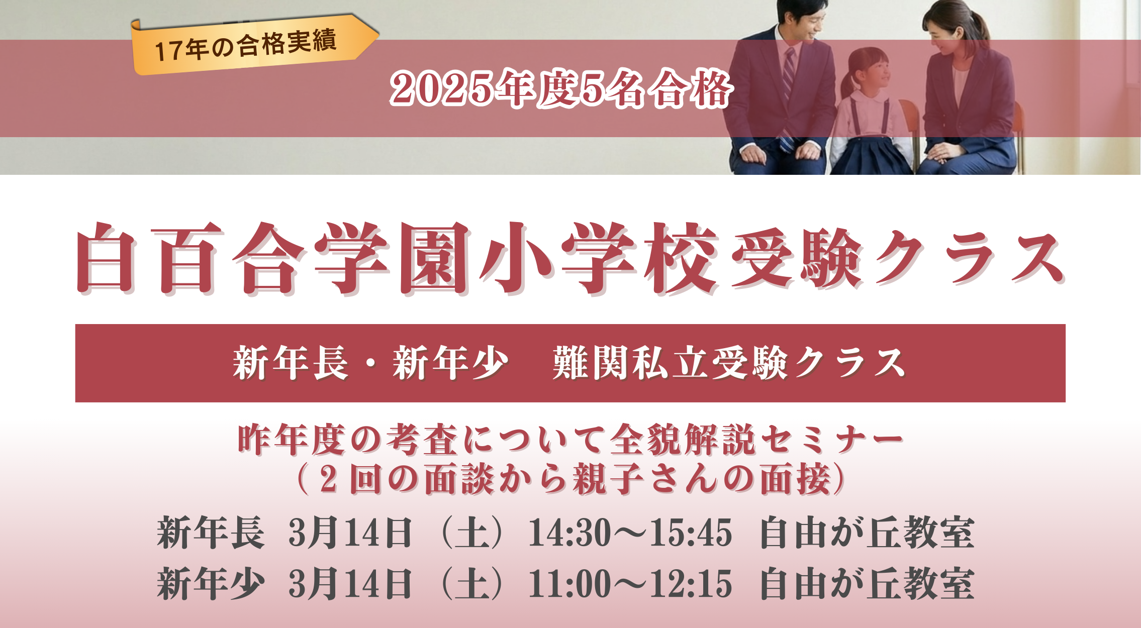 2025年度受験で白百合学園小学校5名の合格実績を持つ専門クラスです。