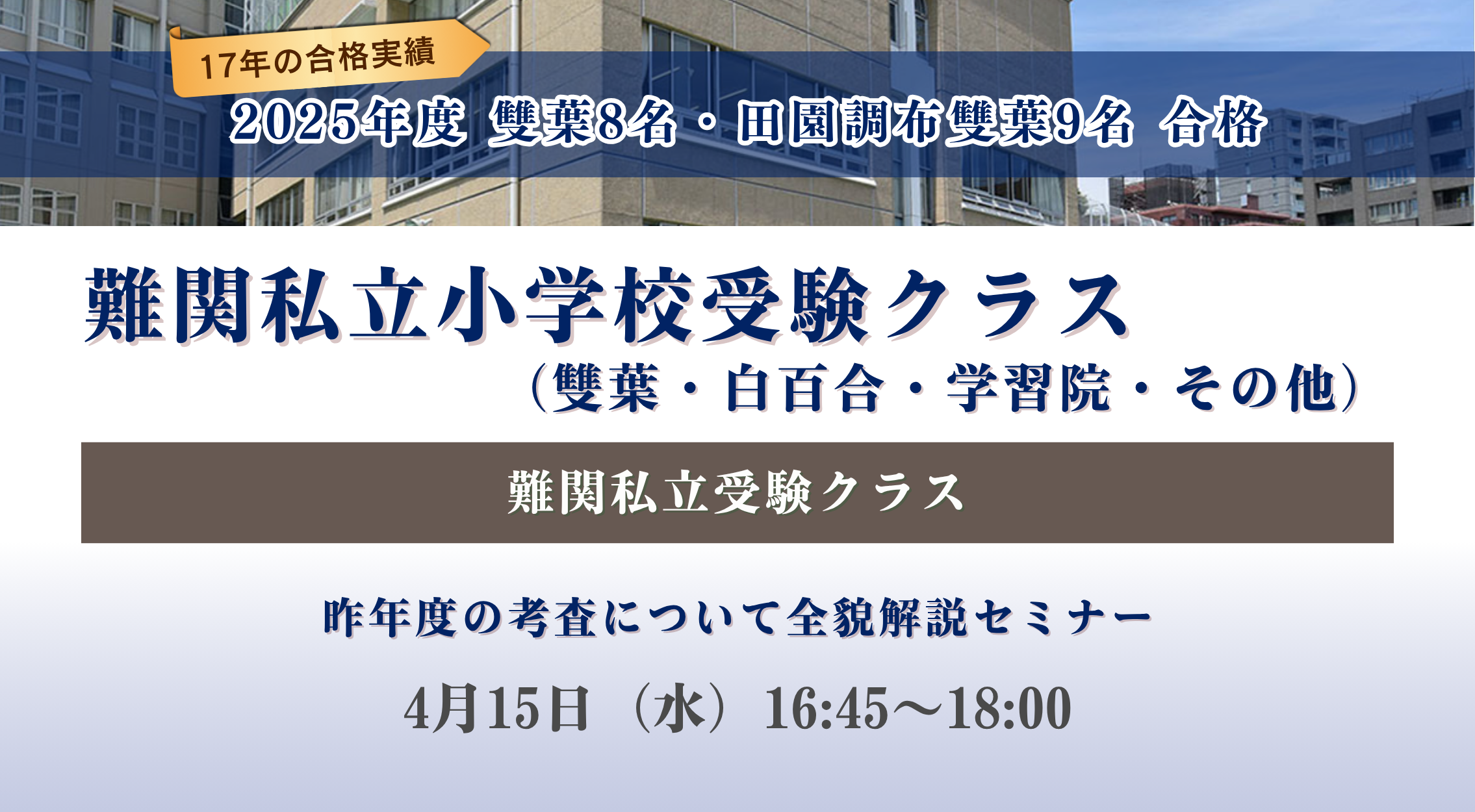 2025年度受験で雙葉小学校8名の合格実績を誇る専門クラスです。