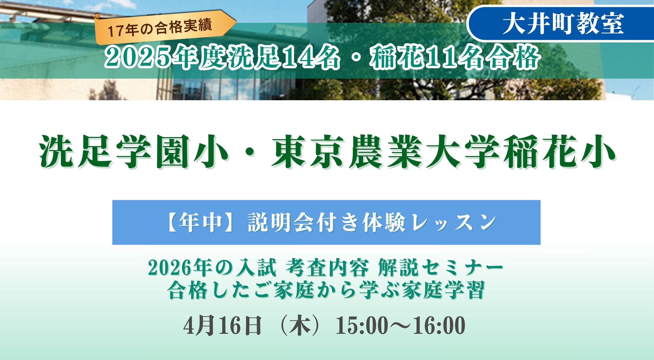 東京農業大学稲花小・洗足学園小学校 2026年の入試 考査内容 解説セミナー